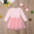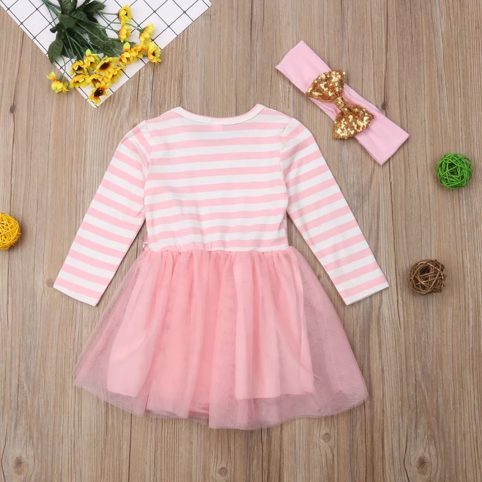 Baby Girl Long Sleeve Striped Pink One Birthday Tulle Party Dress Summer Cute Headband