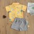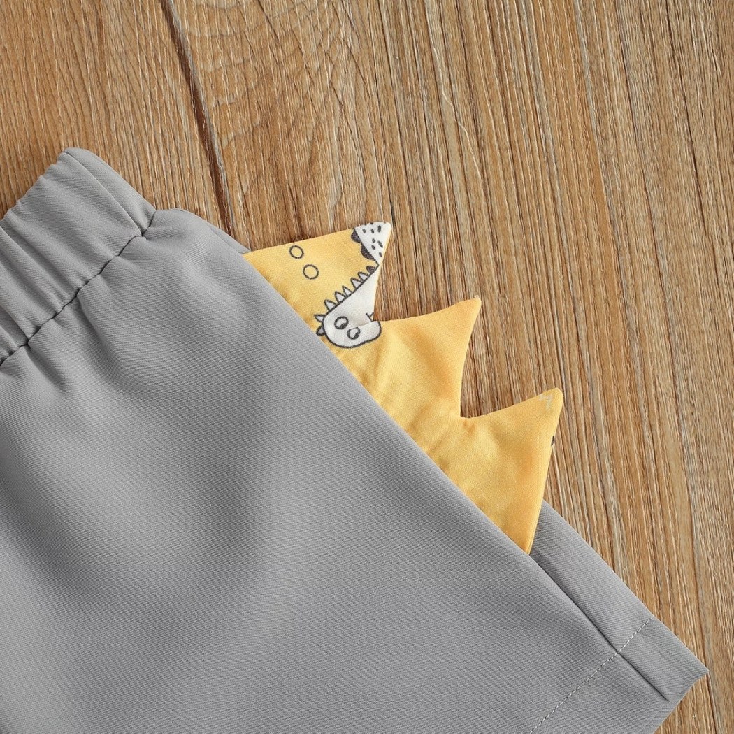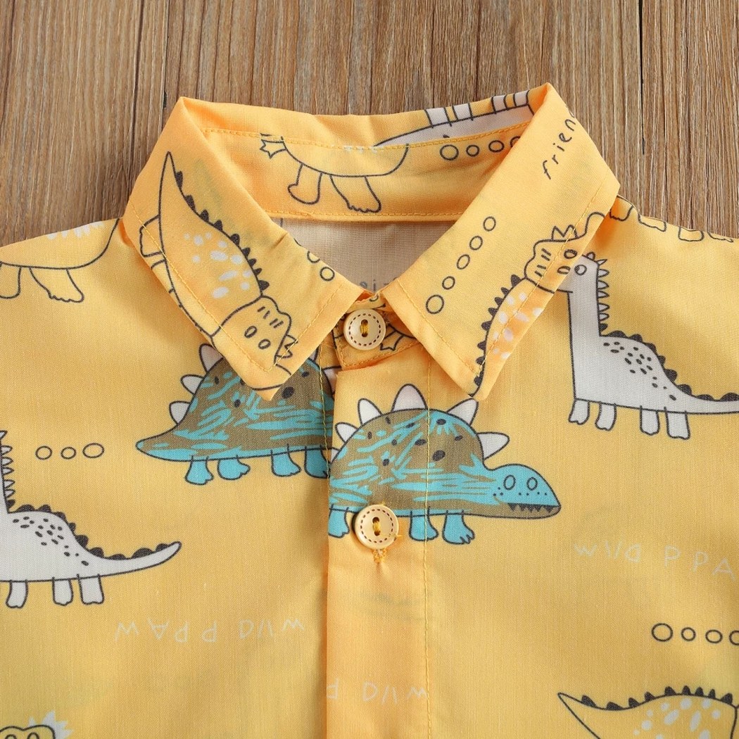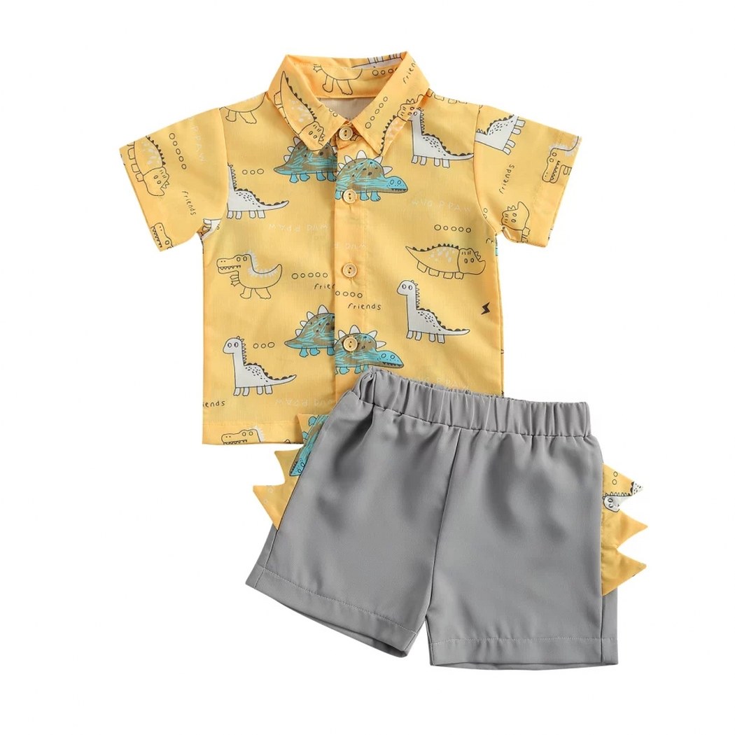Kids Boys Fashion 2-piece Outfit Set Short Sleeve Cartoon Dinosaur Print Shirt+Shorts Clothes Set