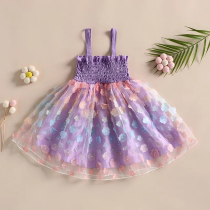 Summer Toddler Dresses Cute Flower Princess Dress Baby Butterfly Appliques Dress Children Mesh Bow Kids White Costume