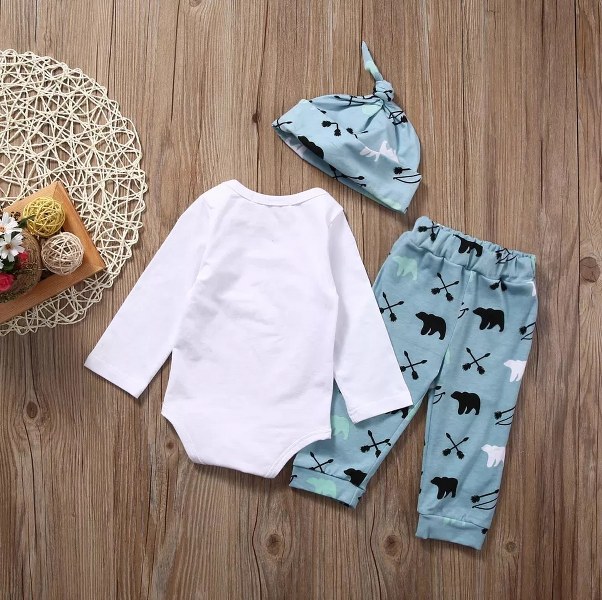 Baby Boys Clothes Children Clothing Long Sleeve Bodysuit Joggers Pants Hat 3pcs Cotton set, Baby Boy Outfit Letter Little Man