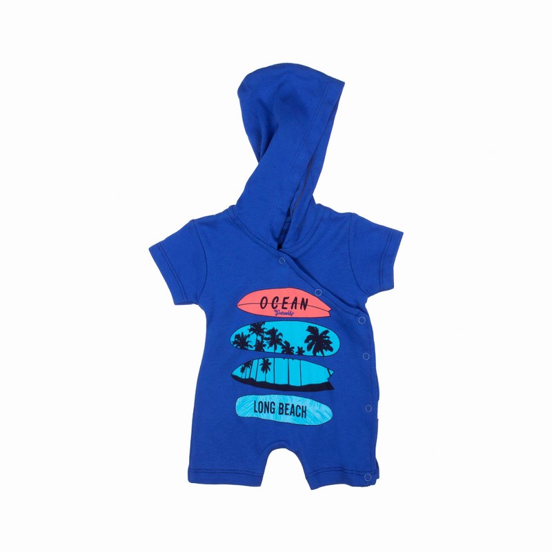 Baby Boy Rompers with Hoodie and Surfboard Printed. 100% cotton, Made in Turkey.